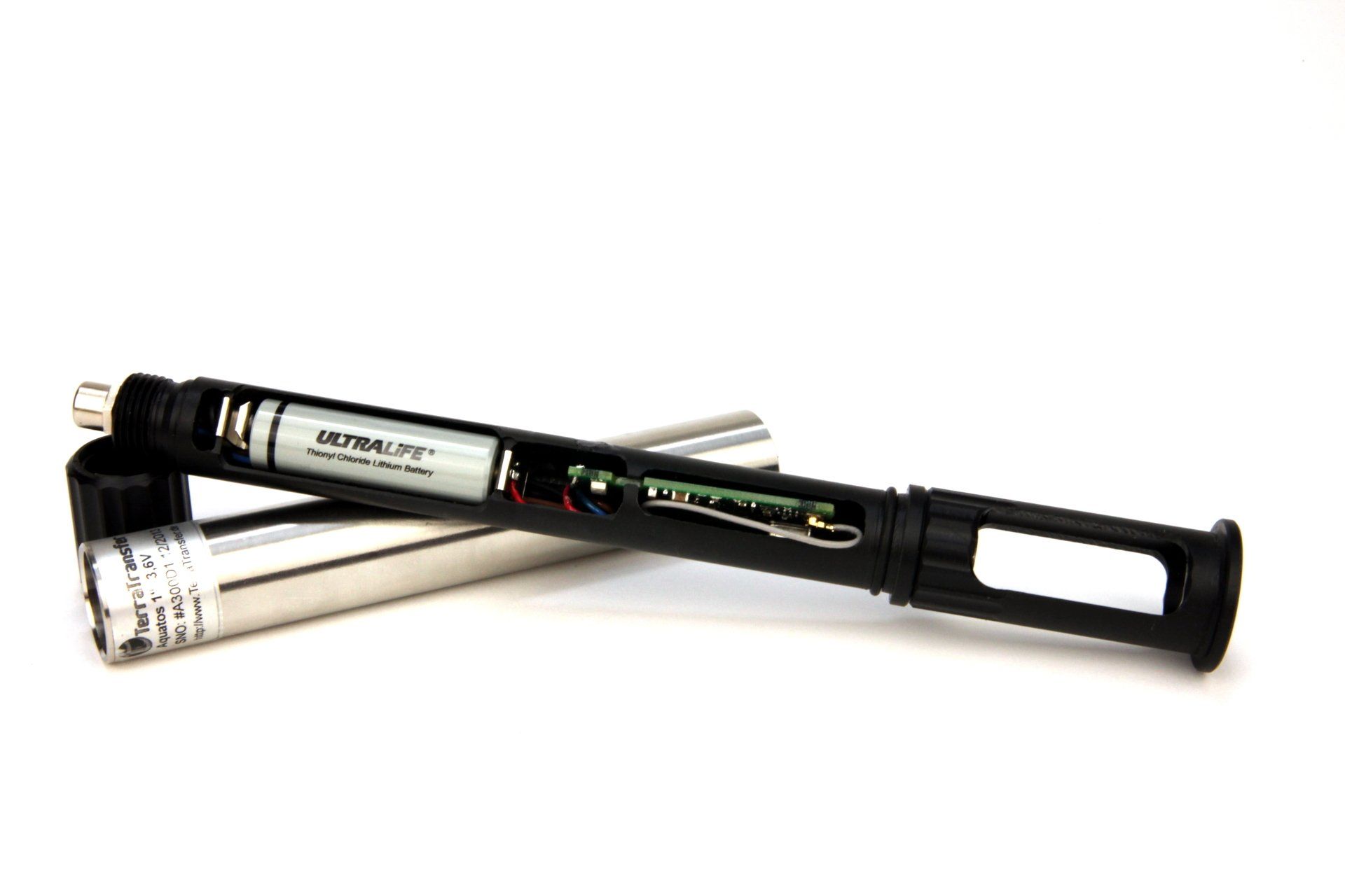 Kleiner Datenlogger mit Druck- und Temperatursonde ab 1 Zoll Messtellen. Das Auslesen funktioniert kabellos über eine 433 MHz Nahfunk Schnittstelle.